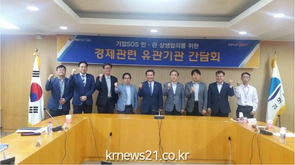 김포시는 지난 19일 김준현 경기도의원, 경기도경제과학진흥원 서부지소장, 경기신용보증재단 김포지점장, 경기테크노파크 북서부사업단장 및 경제환경국장, 기업지원과장, 기업SOS팀이 참석한 가운데 기업상생 협력 및 기업애로 해소를 위한 제6차 간담회를 가졌다."고 밝혔다.