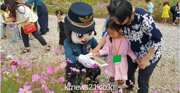 인천계양경찰서(서장 정진관)효성지구대에서는 지난 7월 계양구 효성동 재개발구역 보람농장 신작로에 주민들과 함께 코스모스 10만본을 식재하는 행사를 가진 후 가을 코스모스가 만개해 지역주민들에게 흴링과 감동을 주고 있다."고 밝혔다.