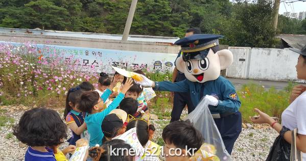 효성지구대는 현장학습 체험 어린이들을 대상으로 교통안전을 실시하고, 포순이 · 포돌이와 함께 기념촬영 및 순찰차 탑승체험의 시간을 가졌다.