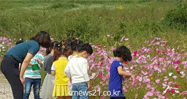 이날 코스모스 꽃길에서 현장학습 체험에 참가한 0 0 0 어린이집 교사는 “최근에 코스모스 꽃이 이렇게 많이 핀 곳을 본적이 없었는데 아이들과 함께 와서 자연학습도 하고, 산책도 하기 딱 좋을곳이다.”며 “오랜만에 여유를 가지고 가을을 느껴 보았다.”며 즐거워했다.