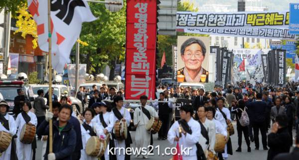 22일 서울지방경찰청에 따르면 전농을 비롯한 농민단체들과 민주노총, 백남기투쟁본부 등 진보단체들은 23일 광화문광장을 중심으로 오후 3시부터 대규모 집회에 나설 계획이다. 고 백남기 씨의 사망 1주기를 추모하기 위한 이날 도심 집회에는 총 5000여 명이 몰릴 것으로 예상된다.
