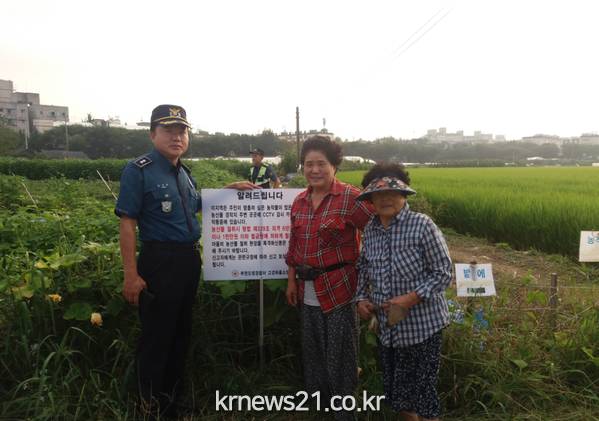 고강파출소 (경감 정옥균)에서는 지난 3일 도농복합도시의 사각지대인 농가 주변을 삼삼오오 순찰하던 중, 농민들의 애로사항을 청취하는 소통의 시간을 가졌다.