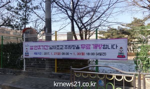 명절연휴를 즐겁고 안전하게 보내기 위한 학교 주차장 개방사업은 관내 학교를 대상으로 사전조사를 통해 개방희망 학교를 선정했고 남사초등학교 등 총 22개 학교가 참여했다.