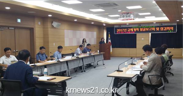 이날 규제개혁 주요 사례로 ▲장애물 없는 생활환경(BF) 수수료 및 절차 개선 ▲전문건설업 등록기준 중 자본금 기준 완화 ▲생산녹지지역에서 건축물의 층수 완화 건 등이 제시돼 열띤 토론이 펼쳐졌다.