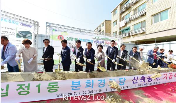 부평구는 지난 26일 홍미영 부평구청장, 임지훈 구의회의장 및 시․구의원, 십정1동 자생단체회원과 주민 등 100여 명이 참석한 가운데 십정동 24-13에서 ‘십정1동 분회경로당 건립 기공식’을 가졌다."고 밝혔다.