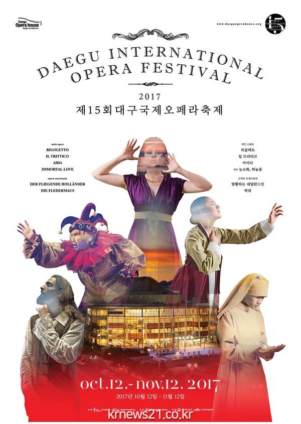제15회 대구오페라축제는 '오페라와 인간(OPERA & HUMAN)이라는 주제로 오는 10월12일부터 11월12일까지 5주간 대구일대에서 여정을 펼친다. 개막작인 베르디의 '리골레토'를 비롯해 메인 오페라 4편, 오페라 콘체르탄테 2편, 소극장 오페라 4편이 무대에 오른다. 이와 함께 전국 아마추어 성악콩쿠르, 프리 콘서트 등 다양한 특별행사와 부대행사도 펼쳐진다.