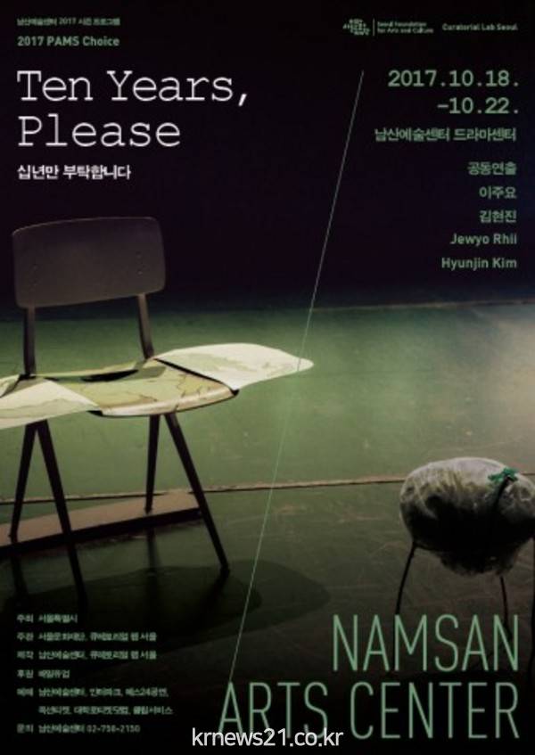 서울문화재단(대표이사 주철환) 남산예술센터는 2017년 시즌 프로그램으로 <십년만 부탁합니다>(공동연출 이주요 김현진, 큐레토리얼 랩 서울 공동제작)을 18일(수)부터 22일(일)까지 남산예술센터 무대에 올린다.