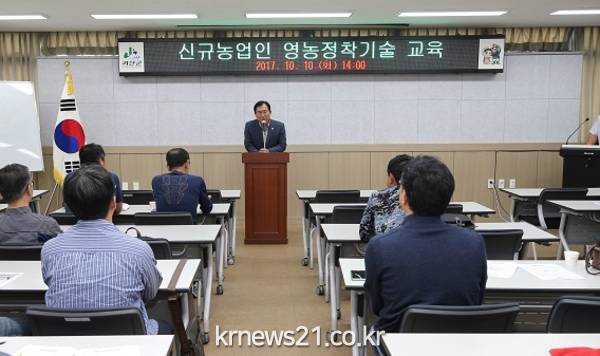 괴산군은 10일 농업기술센터 미생물관에서 신규농업인 영농정착기술교육 개강식을 갖고 교육을 실시했다.