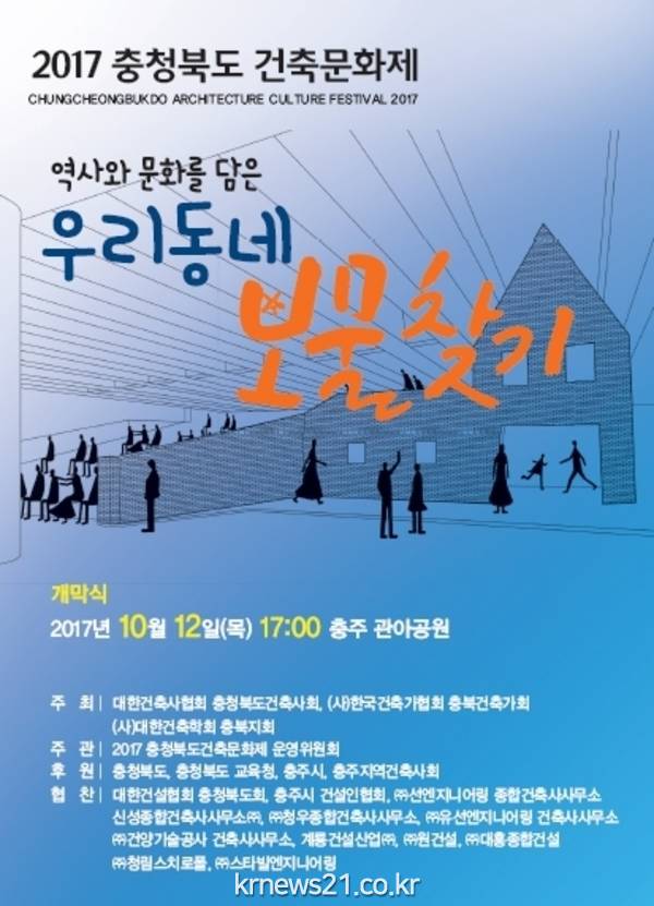 충청북도 건축문화의 현주소를 살피는 2017 충청북도 건축문화제가 오는 12일부터 17일까지 충주시 관아공원에서 개최된다.