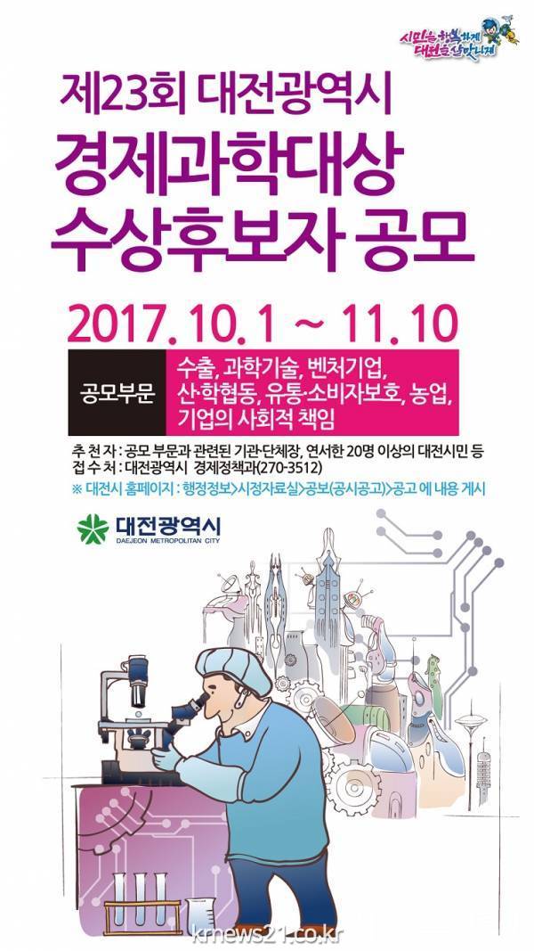 대전시(권선택 시장)가 제23회 대전경제과학대상 수상 후보자를 공모한다.
