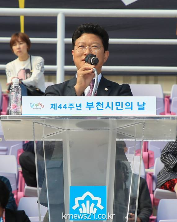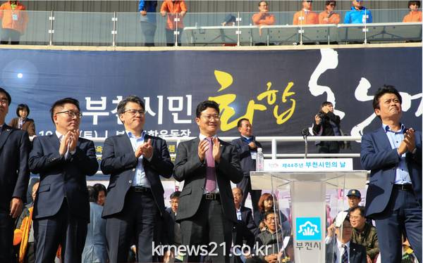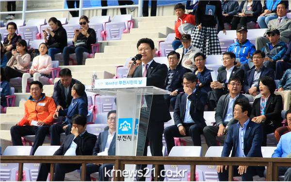 이날 오전 9시 30분 부천종합운동장에서 열린 제44주년 부천시민의 날 기념식은 헤스티아 난타 공연, 시민대표의 시민헌장 낭독, 시정발전에 기여한 유공자 시상 등으로 진행됐다.