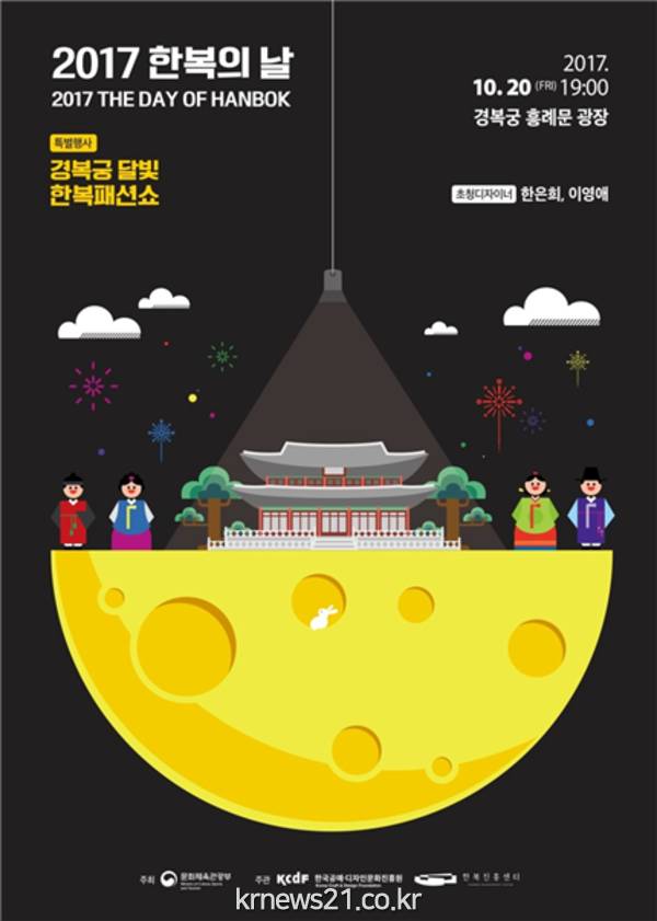 문화체육관광부가 주최하고 한국공예·디자인문화진흥원 부설 한복진흥센터가 주관하는 '2017 한복의 날' 행사가 오는 20일 경복궁 흥례문 광장에서 열린다.