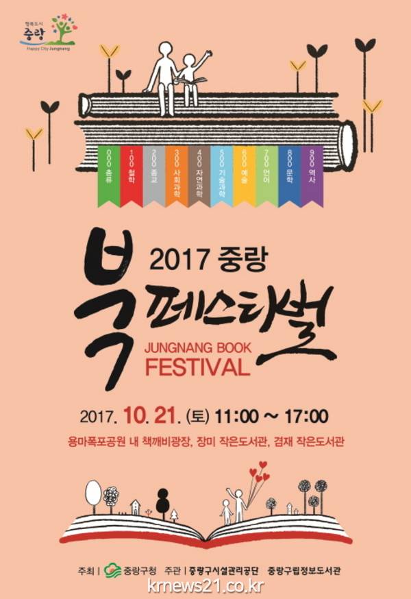 중랑구(구청장 나진구)는 오는 21일 오전 11시에서 오후 5시까지 용마폭포공원 책깨비 광장과 장미 작은도서관·겸재 작은도서관에서 ‘2017 중랑 북 페스티벌’을 개최한다.