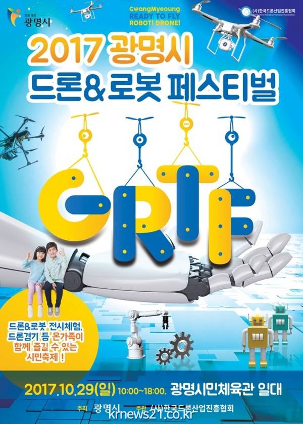 광명시(시장 양기대)가 29일 광명시민체육관에서 주최하는 ‘2017 광명시 드론&로봇 페스티벌’ 행사의 일환으로 홈페이지(www.grtf.kr)를 통해 지자체 최초로 공공기관 드론 활용 서비스 아이디어를 공모한다.