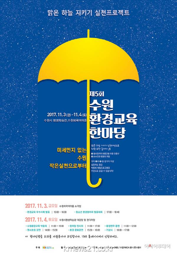 그밖에 수원시가 자체 제작한 환경연극 ‘보물을 찾아서’, 올 한해 수원시에서 진행한 환경교육 현장 사진과 작품을 전시하는 ‘한마당 전시회’, 환경 음악공연 등 볼거리도 풍성하게 마련돼 있다.