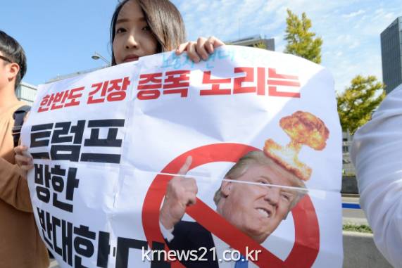 이들은 트럼프 대통령이 한국에 머무는 7~8일에도 청와대 인근과 광화문광장, 용산 하얏트 호텔, 국회 등에서 트럼프 대통령 규탄 활동을 진행하겠다고 예고했다.