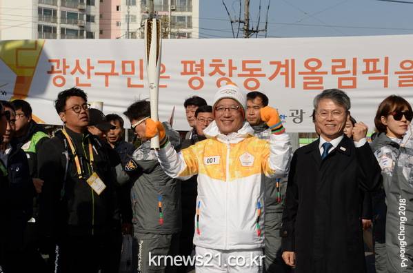 2017 평창동계올림픽 성화가 24일 광주 광산구를 밝혔다.