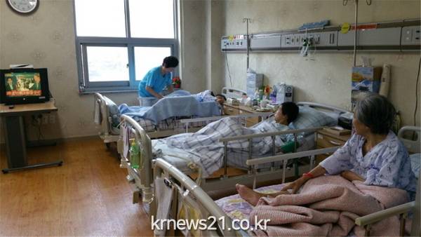 ▲ 간병부담과 사회적 문제를 해소하기위한 보호자없는 병실운영장면
