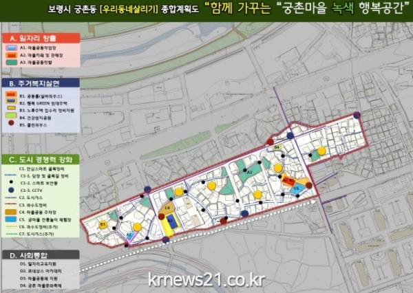 보령시는 국토교통부가 낙후지역 개선을 위해 추진하고 있는 도시재생 뉴딜사업의 우리동네살리기형 분야에‘함께 가꾸는 궁촌마을 녹색 행복공간’이 선정, 국비 50억 원을 확보했다.