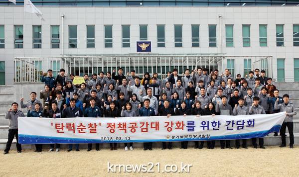 경기북부지방경찰청(청장 김기출)은 13일 경기북부경찰청 1층 대강당에서 122명의 지역경찰 관리요원 및 현장직원을 대상으로, 주민이 희망ㆍ요청하는 장소를 순찰하는 ‘탄력순찰’ 시행 5개월 경과를 되집어보고 정책공감대 강화를 위한 간담회를 개최했다.
