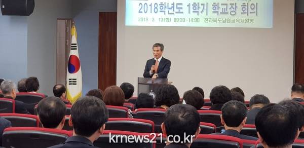 전라북도 남원교육지원청(교육장 김태수)은 지난 3월 13일(화) 교육지원청 시청각실에서 관내 유·초·중·고·특수학교 교(원) 장 대상으로 2018학년도 1학기 주요업무를 공유하는 학교장 회의와 청렴교육을 실시하였다.