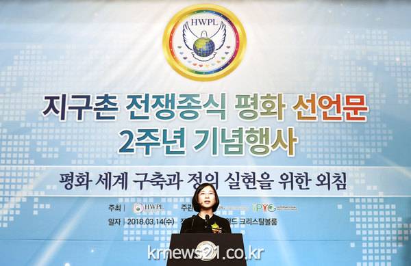‘지구촌 전쟁종식 평화 선언문 2주년 기념행사’가 서울 잠실 롯데호텔 크리스탈볼룸에서 지난 14일 오후 2시에 개최됐다.