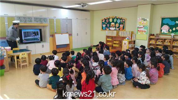 인천계양경찰서는 21일 귤현초등학교 병설유치원 을 방문하여 교통안전을 위한 교육 실시