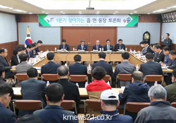 보령시는 28일 오후 대천1동 행정복지센터 회의실에서 김동일 시장과 국․단장, 읍면동장, 통장 등 60여 명이 참석한 가운데 2018년 1분기 찾아가는 읍면동장 토론회를 가졌다.