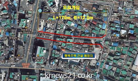 여수시가 폭이 좁아 차량통행 등에 불편이 있었던 동문동 우체국~동문동 주민센터 간 도로를 확장한다.