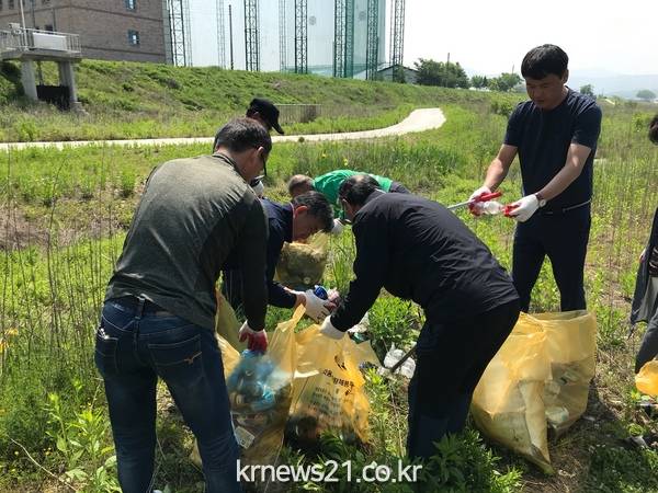 이들은 용진읍 관내 소양천 구간 5km에 달하는 하천변의 쓰레기를 수거하고 낚시꾼들의 불법투기를 근절하는 캠페인도 병행했다.