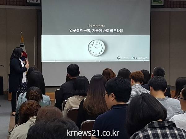 ▲  찾아가는인구교육(전북/뉴스21)송태규기자= 완주군이 세계 최저 수준의 출산율과 급격한 노령화로 인한 인구절벽 위기에 대응하기 위한 인구교육을 실시했다. 11일 완주군은 군청 문화강좌실에서 공무원 100여명을 대상으로 지난 10일 ‘2018 찾아가는 인구교육’을 실시했다고 밝혔다.
