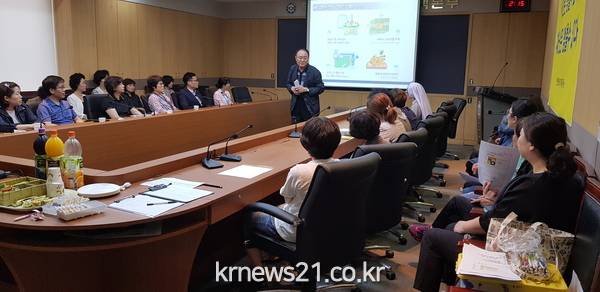 이날 교육은 위생관리가 취약할 수 있는 50인 이하 소규모 어린이집과 요양시설의 안전한 급식환경 조성을 위해 마련된 것으로, 식중독 예방 전문가 김인겸 강사가 오후 2시부터 식중독의 이해와 예방, 개인위생, 식재료 위생관리, 세척 · 소독, 시설관리 등의 단계별 식중독 예방관리 요령을 강의했다.