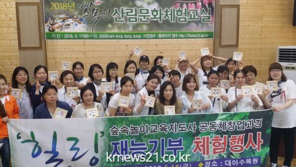 이들은 숲속놀이교육지도사 과정을 마친 수료생(20명)들이 공동체를 구성함에 있어 필요한 사업지원과 지속적인 사후관리 지원방안 등을 모색했다. 회의 이후에는 대아수목원에서 교육생들이 이주여성들에게 숲체험 재능기부를 진행했다.