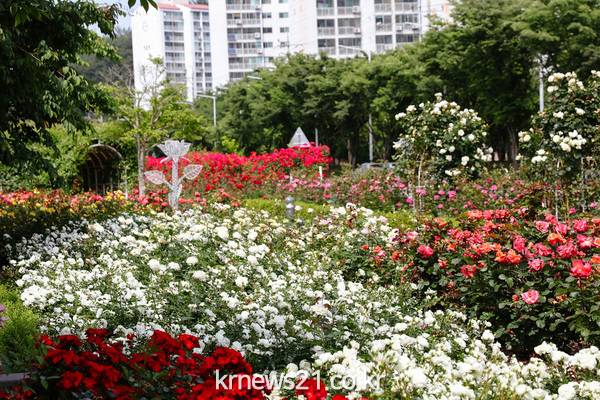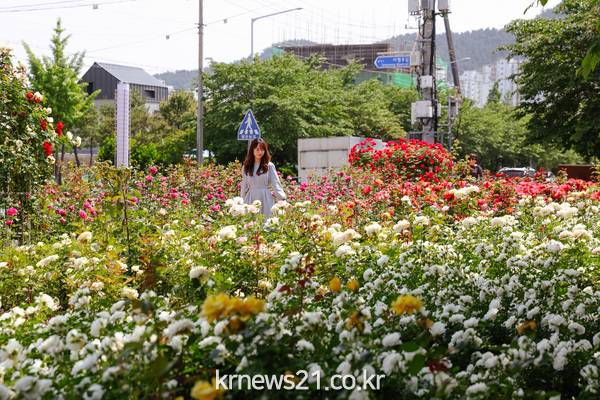 화사한 봄기운이 만연한 지난 5월 21일 광양읍 서천변 일원 장미공원에 형형색색의 장미