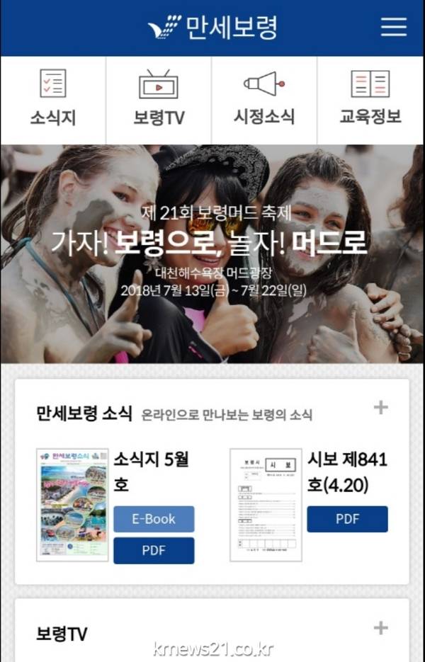 보령시가 매월 시민들에게 시정의 주요 소식을 담아 지면 형태로 제공하는 만세보령소식 서비스를 젊은 층의 시정 참여 확대를 위해 모바일을 통해서도 이용할 수 있도록 앱을 개발하고 서비스를 시작했다.