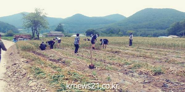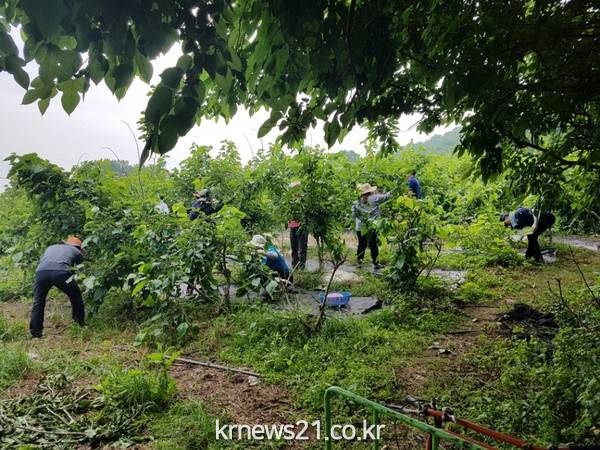 이날 농촌일손돕기에서는 한낮 기온이 30도가 넘는 무더위 속에서도 아직까지 수확하지 못한 양파를 수확하고 무성한 잡풀을 제거하는 등 일손이 부족해 어려움을 겪고 있는 농가에 도움을 줬다.