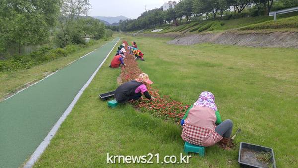 아울러 동․서천 둘레꽃길 8.7㎞ 구간에 식재되어 있는 꽃의 생육관리와 제초작업에 중