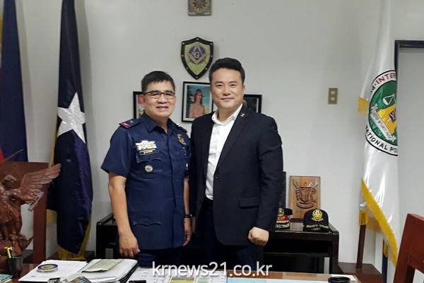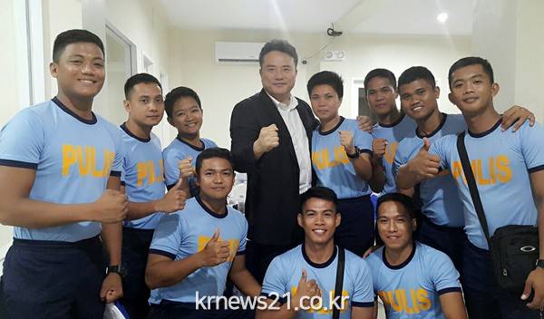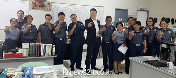 필리핀에 있는 카라바루손 5개주를 담당하는 감찰청장의 초대를 받아 경찰서내에서 모든경찰들과