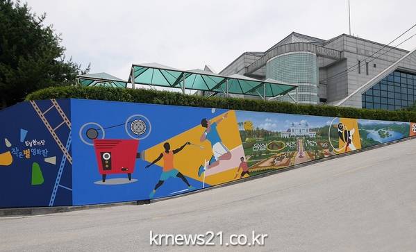 군민체육회관 벽화 조성사업은 스포츠 및 작은별 영화관을 중심으로 이뤄지며, 총 사업비 2천만 원이 투입된다.