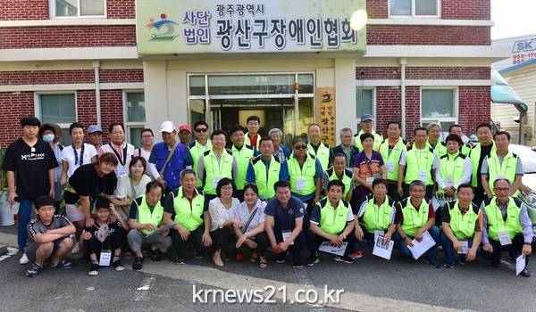 (뉴스21/장병기기자)=4일 광산구장애인협회(회장 이혁)가 ‘광주광역시 대상회 장애인 무료차량봉사회’(회장 최형섭)와 함께 ‘중증장애인 나들이’ 행사를 열었다.