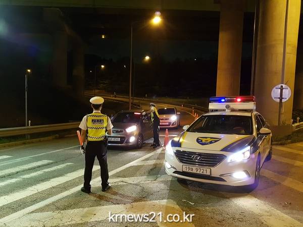 지난주 자유로에 이어 고속도로 출구에서 특별음주단속 벌여 경기북부지방경찰청(청장 김기출)은 6일 23시부터 7일 01시까지 2시간 동안 외곽순환 및 구리포천고속도로의 22개 IC 출구에서 경찰 250여명과 순찰차 43대를 동원하여 특별 음주운전 단속을 펼쳤다.