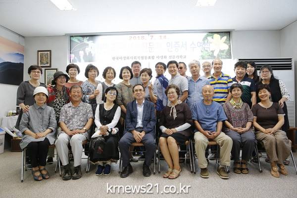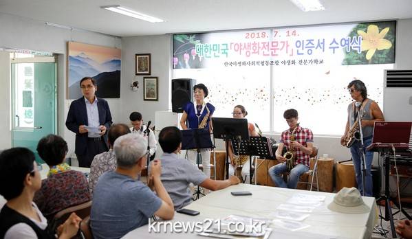 한국야생화사회적협동조합(이사장 양정인)은 대한민국 야생화 전문가 인증서 수여식을 7월14일 협동조합 체험실에서 가졌다.