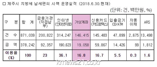 제주시 가상계좌 납부 제도는 지방세의 경우 2009년도부터, 세외수입의 경우 2013년도부터 시행되어 왔으며, 그간 가상계좌 납부 방식이 적용되지 않던 특별회계까지 이번 기회에 전면 확대했다.