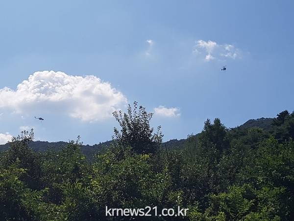 (전북/뉴스21) 정진환 기자 = [속보] 장수군 계남면 신전리, 양신마을-싸리재 방면에 소방헬기가 2대 투입하여 화재 진압 중이다.