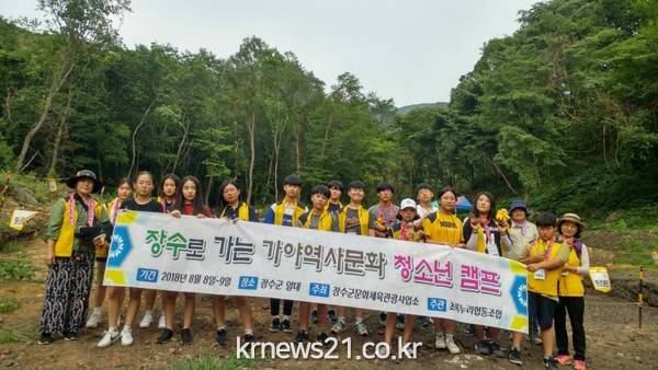 (전북/뉴스21) 정진환 기자 = 장수군과 초록누리협동조합(장수군 1호 교육문화협동조합)은 장수가야 역사문화 교육을 통해 전국적 팬을 육성하기 위한 장수가야 서포터즈 활동을 추진하고 있으며, 그 일환으로 청소년 “장수가야 역사캠프”를 1박 2일(2018.8.8.~8.9.) 일정으로 개최했다.