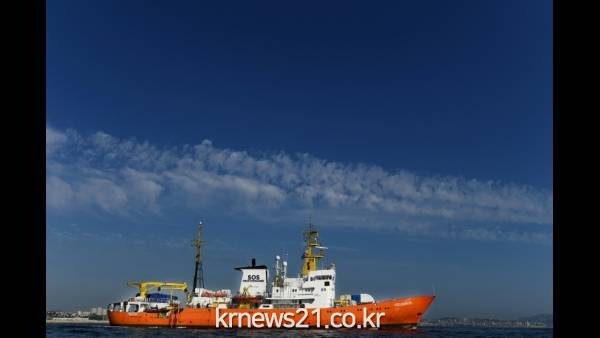 ▲  AFP / Archive / BORIS HORVAT[제공자ⓒ 뉴스21통신. 무단전재-재배포 금지.]지난 10일 리비아 근해에서 두 차례의 구조작업 끝에 난민 141명을 구조한 뒤 현재 지중해의 섬나라 몰타와 이탈리아 람페두사 섬 사이의 해역에서 대기 중인 아쿠아리우스호. 아쿠아리우스호를 운영하는 구호단체 SOS 메디테라네는 이탈리아와 몰타 정부로부터 입항을 거부당했다고 밝혔다.