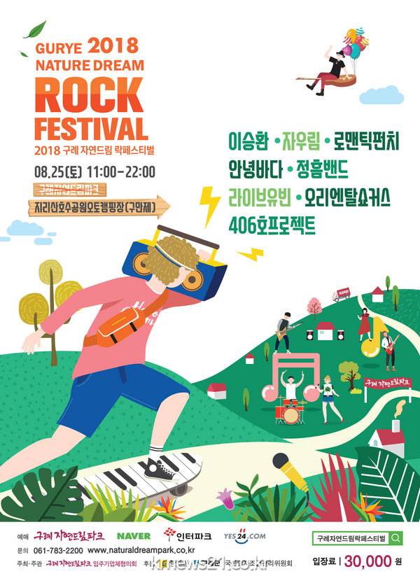 구례군은 여름밤 록밴드 공연을 즐길 수 있는 ‘2018 구례자연드림 락(樂 ) 페스티벌’이 오는