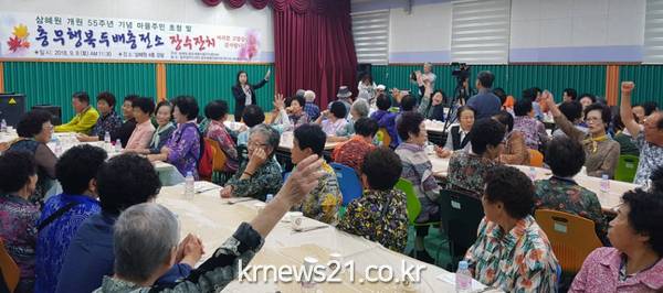 특히 기념식은 충무동 새뜰마을 주민협의체가 주최하는 장수잔치와 함께 열려 주민 200여 명이 함께 참석함으로써 그 의미가 더했다.
