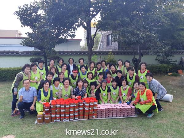 평택시 여성단체협의회(회장 김민서)는 지난 10일 평택예절교육관에서 사랑의 전통 장 담그기 행사를 가져 이웃사랑의 나눔을 실천했다.