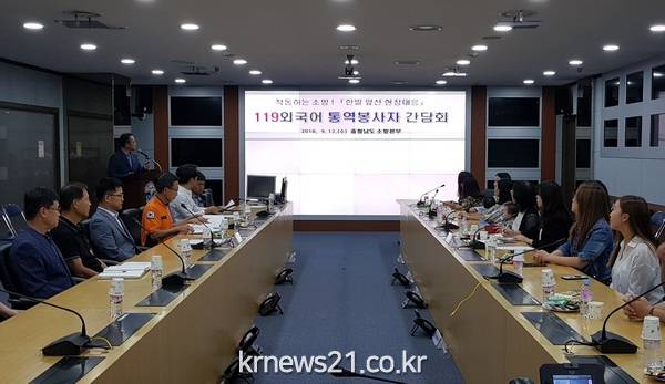 충남소방본부가 119통역봉사자와 함께 도내 외국인과 다문화가족의 소방서비스 사각지대 해소를 위해 함께 힘을 모은다.